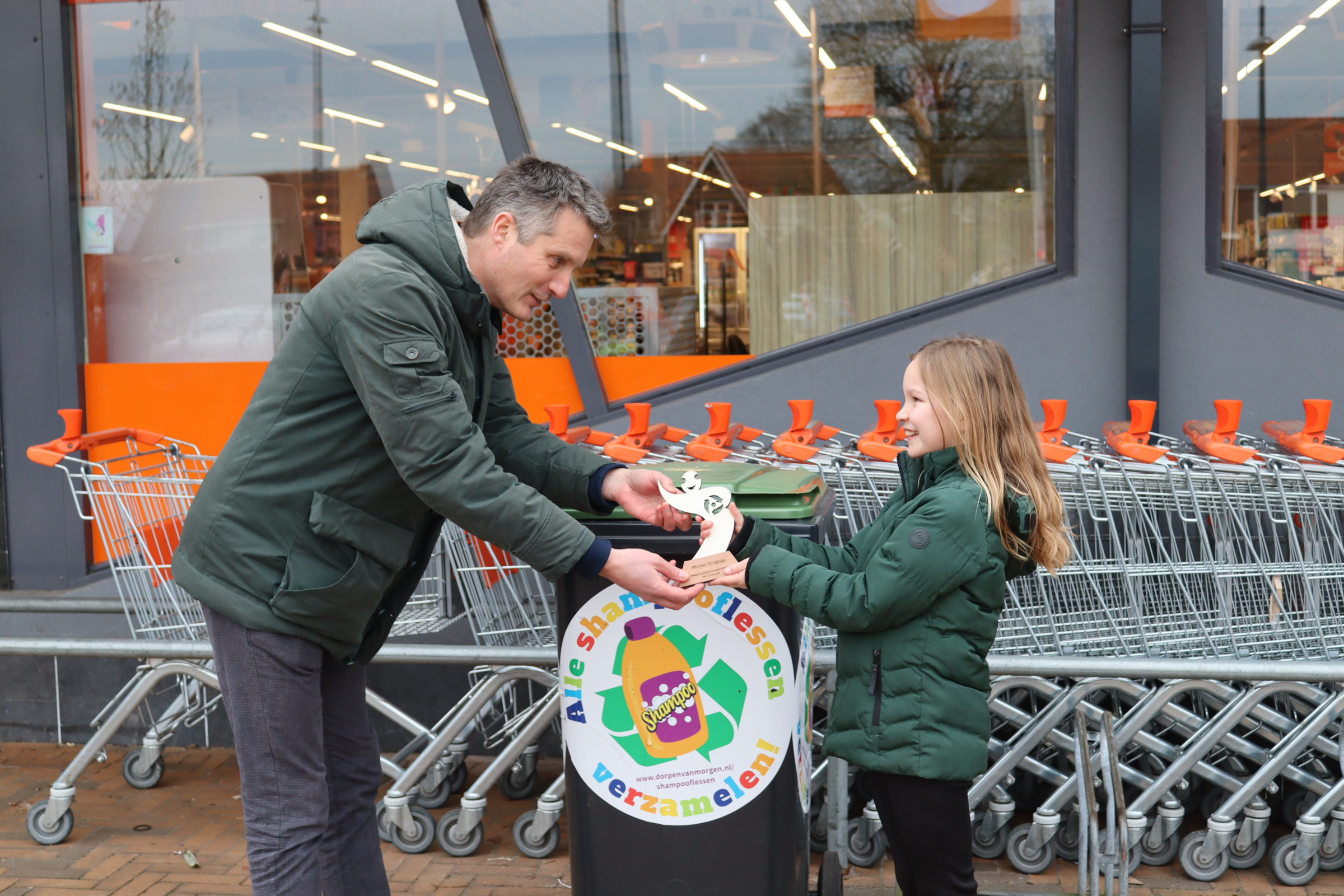 “Het apart inzamelen van shampooflessen is al voor veel inwoners ‘normaal’ geworden. De Natuur en Milieufederaties hopen dat deze inzamelactie zich als een schuimkop door heel Nederland zal verspreiden!”, aldus de jury. Kinderburgemeester van Dalfsen, Myla Groenendijk, mocht de circulaire bokaal namens Dorpen van Morgen in ontvangst nemen. Zij heeft de actie ook mogen aftrappen. “Ik vind het heel bijzonder en mooi dat van alle deelnemers wij hebben gewonnen!”, aldus Myla. Ook na het winnen van deze mooie prijs staat het initiatief niet stil. “We willen dus eerst zorgen dat we die bakken gaan maken, dat zit er nu wel in. En dan willen we kijken of het mogelijk is om het breder uit te rollen”, aldus Ad Zwaga, actief betrokken bij Dorpen van Morgen.