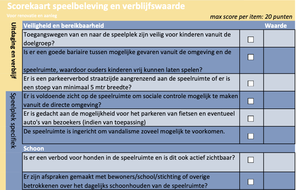Zie het voorbeeld Samen beter buiten spelen van gemeente Lelystad en de bijhorende bijlages.