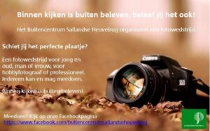 Bij het Buitencentrum bieden wij de mogelijkheid om een foto expositie te organiseren. Wij geven 15 personen de kans om de leukste, grappigste, meest fantastische Sallandse Heuvelrug natuurfoto, ingelijst in te leveren.
