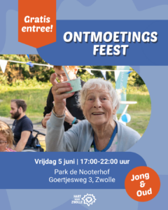 Graag breng ik jullie op de hoogte van het Ontmoetingsfeest van stichting Hart voor Zwolle. Op vrijdag 5 juni wordt Park de Nooterhof omgetoverd tot een gemoedelijk festival. Een gezellige avond met muziek, spelletjes en lekker eten en drinken. Maar vooral ruimte voor échte ontmoeting. Het gehele evenement is gratis, ook het eten en drinken!