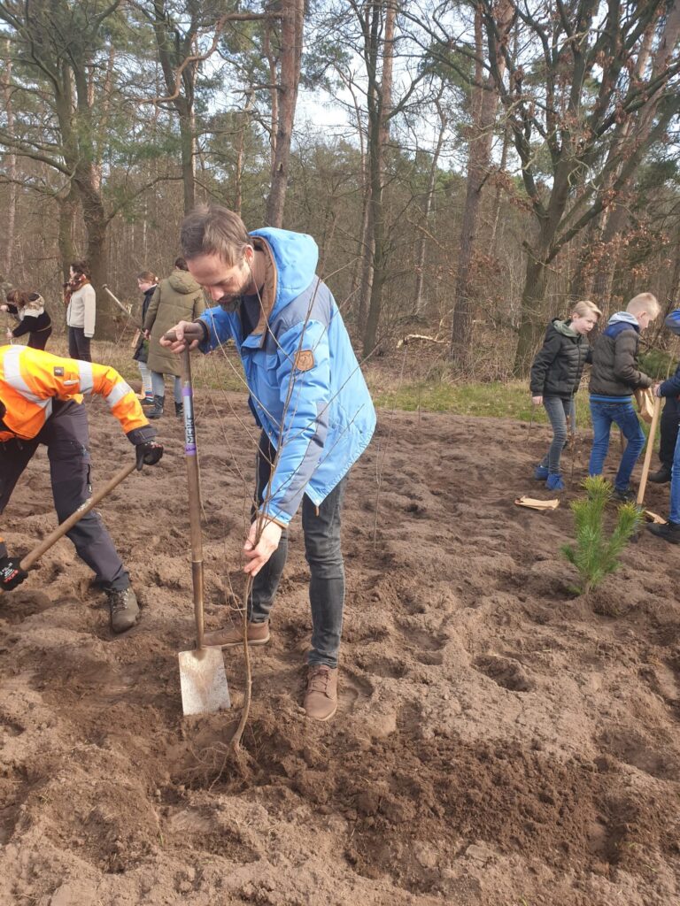 Heel veel bomen planten aan de rand van de Sallandse heuvelrug, een ludiek bomenlied van Andre Manuel en een avontuurlijke survivalbaan tussen de bomen: zo zag de Overijsselse Boomfeestdag in Rijssen er 16 maart uit.