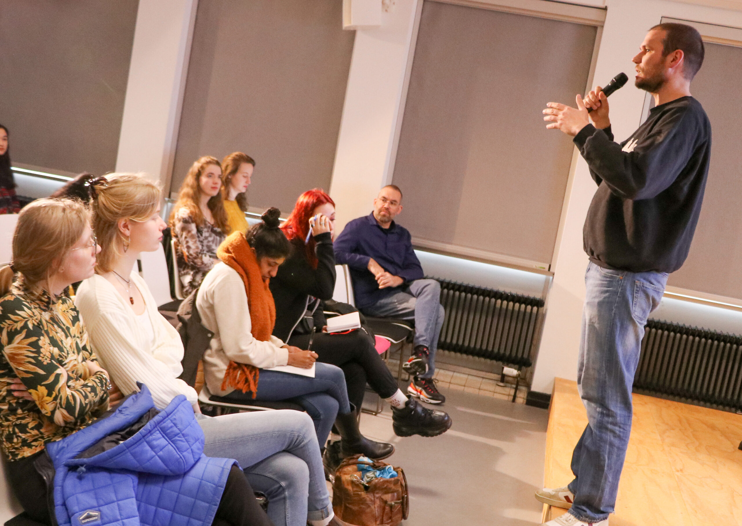 Studenten Restauratie en Decoratie Teuntje en Anouk hebben er zin in. ‘Het is een heel interessante opdracht’, zegt Teuntje. ‘Ik vind kringloop sowieso geweldig. Ik kom er vaak, om milieuredenen, maar ook om kunstzinnige redenen. Het is heel leuk om her te gebruiken. Ik denk dat ik iets met rotan en riet wil gaan doen. Misschien verpulveren, mengen met andere producten. Je moet natuurlijk wel opletten dat het proces niet te duur en te milieubelastend wordt.’ Anouk heeft nog nooit een opdracht op het gebied van hergebruik gehad. ‘Het is een hele uitdaging. Ik weet nog niet welk materiaal me het meest aanspreekt. Het is ook afhankelijk van wat de anderen in het groepje willen. We moeten eerst kennismaken, dan ontdekken wie waar goed in is, en vervolgens nog even uitvinden wie wat wil gaan doen. Maar dat gaat vast lukken.’