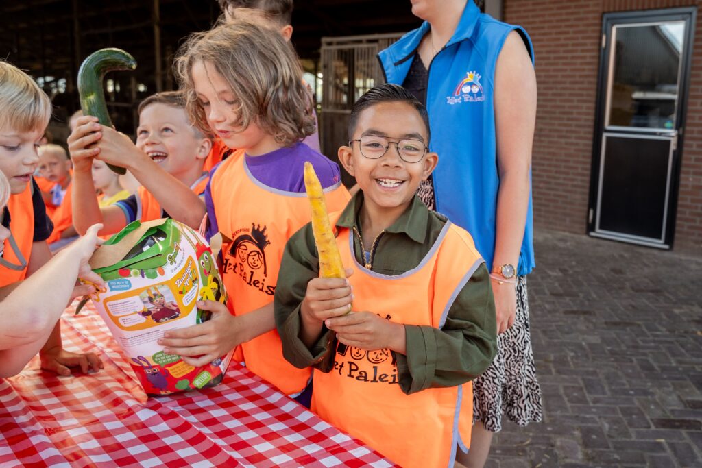 De vierde editie van Spoony’s Gezonde Smikkelweken is vandaag van start gegaan. Het is het grootste nationale groenteprogramma voor kinderen. In de gemeente Almelo trapten we de Gezonde Smikkelweken Overijssel feestelijk af bij Kiekeboer’n bij Melkveebedrijf Werning. Wethouder Jan Martin van Rees van de gemeente Almelo overhandigde het pakket met verse groente-activiteiten aan de kinderen van BSO het Paleis. Ook ging hij met hen een groentechallenge aan. Tijdens de Gezonde Smikkelweken ontdekken kinderen op een speelse manier gezonde en duurzame voeding, door middel van spelletjes, proeven en zelf koken, van regenboogpizza tot popcorn poffen. 1000 bso’s en 70.000 kinderen doen dit jaar mee.
