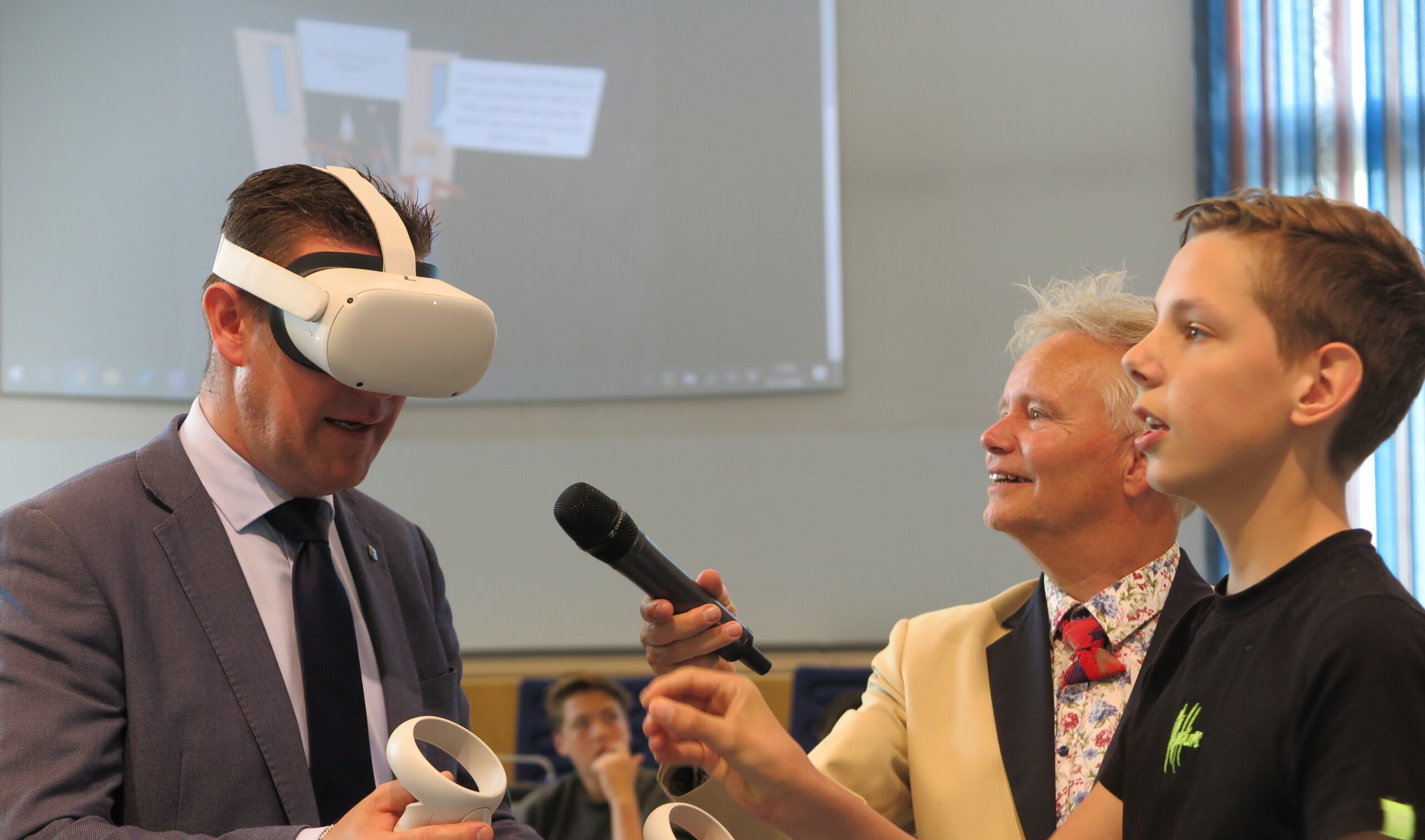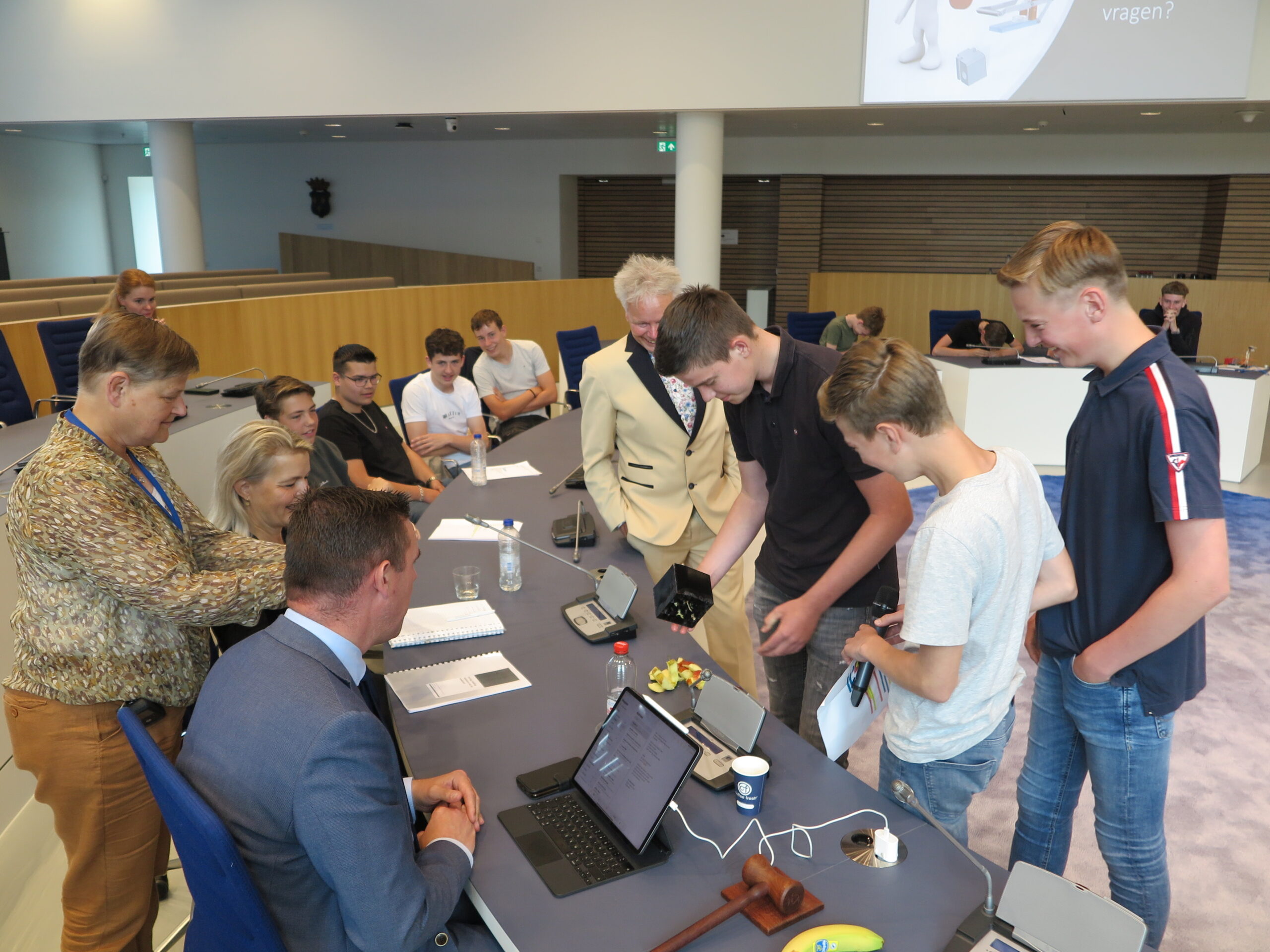 Het jongerenadviesbureau Blaadje Sla van Het Noordik uit Almelo won vandaag de hoofdprijs in het educatieve project Adviseurs van de Toekomst. Zij gaven advies aan gemeente Almelo over hoe ze het eetpatroon van inwoners kunnen verbeteren. Het adviesbureau sleepte de winst in de wacht met een tweetal technische oplossingen: een robotarm die groente en fruit uitdeelt en een VR game over gezonde voeding. Wethouder Eugène van Mierlo mocht, als voorzitter van de jury, de prijs aan de leerlingen overhandigen.