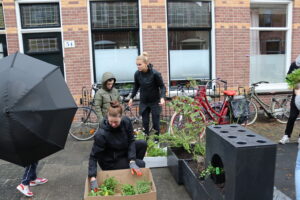 De dag werd afgetrapt door Adriaan Mosterman, vertegenwoordiger van de gemeente én buurtbewoner, die samen met de bewoners het plan van aanpak besprak. Al sinds begin dit jaar is hij bezig met het project, onder andere met onderzoeken naar draagvlak en behoeftes van de buurtbewoners. Uit dit onderzoek kwam dat vergroening van de straat om hittestress tegen te gaan een belangrijk thema is in de Lindestraat. Een mooie kans om aan te pakken met City Parasite. Dus werden in voorbereiding op zaterdag planten gehaald om in de Plastic Parasite bakken te zetten.