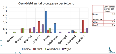 Dankzij de analyses van SOVON en de Vlinderstichting kon Esther Graaskamp de vrijwilligers weer voorzien van een terugblik op de resultaten van dit jaar. Zo zagen we dat het landschapstype direct terug te zien is in de vogelsoorten. Zo zijn er veel kieviten geteld in het open landschap bij Heino. Nieuw dit jaar: op de Elshof is een baltsende Wielewaal gehoord!