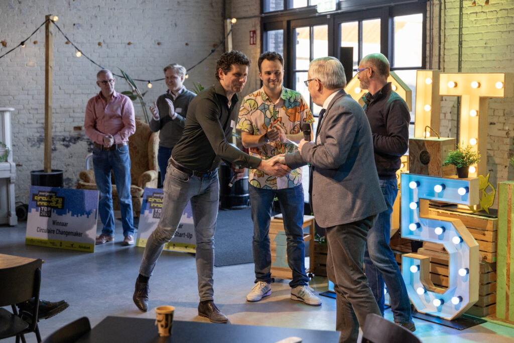 De genomineerden mochten hun circulaire innovaties pitchen aan de jury, waarna zij de lastige taak had om de beste initiatieven te selecteren in drie categorieën. Na een spannende jurering zijn de winnaars bekend gemaakt en toegesproken door Gert Harm ten Bolscher, gedeputeerde van de provincie Overijssel: