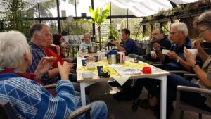 In de zomer organiseert NMO altijd een dag waarbij buurten en straten ondersteuning krijgen bij het ontwikkelen van een plan en het indienen van een voorstel. Locatie is de ontmoetings- en beleeftuin van revalidatiecentrum Vogellanden, een ecovriendelijk ingerichte tuin waarin cliënten van het centrum, buurtbewoners en andere belangstellenden kunnen wandelen, ontspannen en tuinieren. Een plek dus die de creativiteit over openbaar groen en haar diverse functies behoorlijk prikkelt. Met een soepje en een drankje erbij worden daar half juli ruim veertig plannen bedacht, opgesteld en subsidiewaardig gemaakt. “En tot heden honoreert het Oranjefonds Nederland ieder groen voorstel vanuit Zwolle. Die 350 euro per plan is dus dubbel en dwars besteed! Ook vanwege de vergroening voor de stad.”